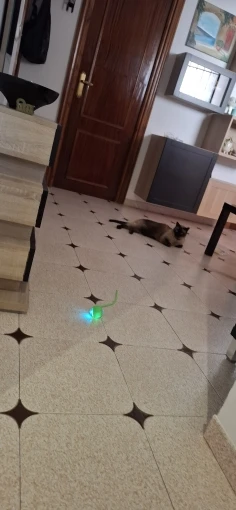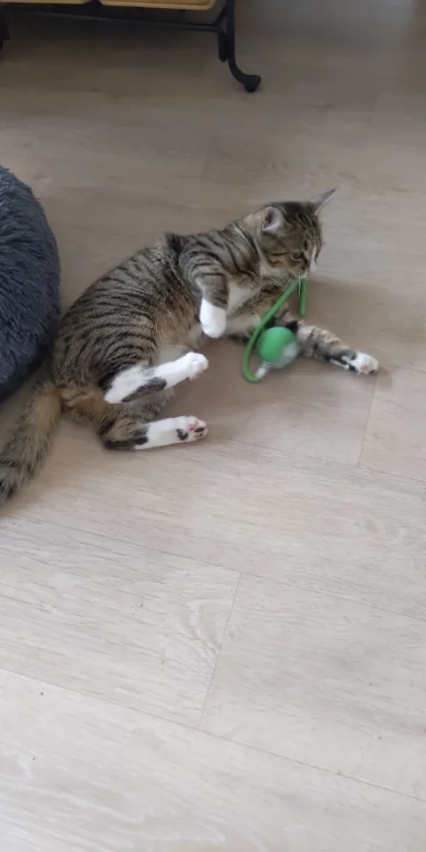 Ingeborg Veum Very well! This game pleases our cat very much and she never gets tired of it. The recharging system with red light flashing until the recharging is complete and then stays solid once charging is complete is well thought out. The ball allows for quite a long playing time, it pauses after a while and lights up again if the cat solicits it or conversely turns off if not. The string eventually came loose but we were able to fix it by locking it with a piece of tissue and it doesn't move anymore.